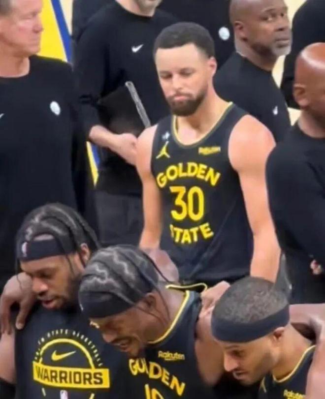 这一幕让我们想起了6年前的总决赛,汤神遭遇左膝十字韧带撕裂,库里坐在地上的背影。