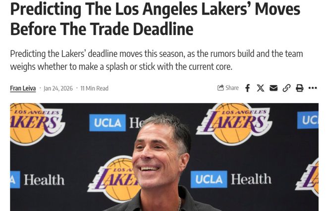 他曝出湖人的计划可能会让大部分球迷失望,他们在这个交易截止日前只希望在侧翼位置进行小规模补强,目标是薪资不高的球员,且不会接手任何长期合同。