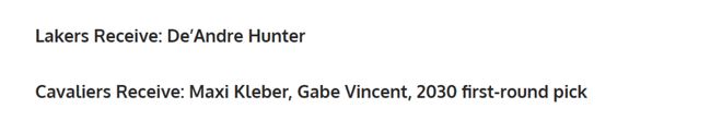第二笔交易方案则是理想状态中的方案,美媒建议湖人队3换1拿下亨特,具体方案如下: