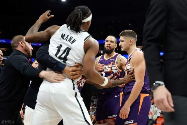 在比赛的最后时刻,场上也是一波三折,还爆发了冲突,当时狄龙和扎威争球。裁判吹哨之后,狄龙还没有放手,一旁的杰明直接推倒狄龙,2人此前就有过争执,随后双方都聚集在一起,好在并没有进一步的动作。裁判经过回放之后,吹罚了杰明、曼恩、波特、奥尼尔和阿伦技术犯规,篮网3人吃到技犯,抵消2个之后,太阳获得了一次罚球机会。