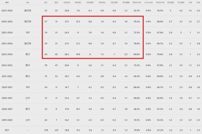 加福德能力显然比海斯强悍,曾连续两个赛季场均11+7,NBA生涯至今场均出战19.9分钟就有9.1分5.7板1助1.5帽全面数据进账,投篮命中率70.3%,又有NBA总决赛高端局经历。