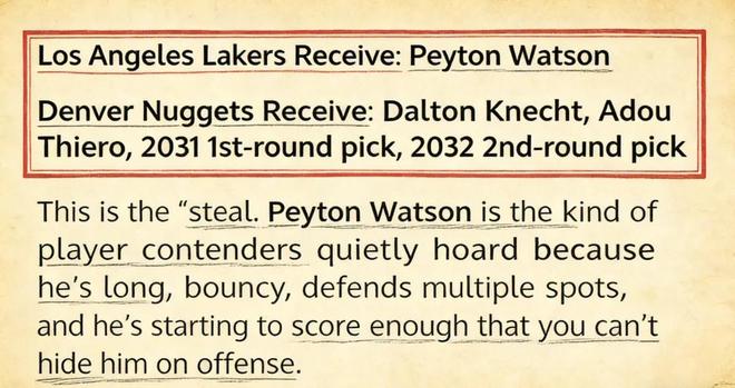 4换1!重磅交易方案出炉,场均15+5超新星加盟湖人,驰援东詹?