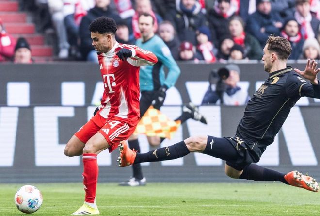 拜仁排出4231阵型。哈里-凯恩顶在最前面。奥利塞、伦纳特-卡尔和路易斯-迪亚斯的进攻组合联袂出击。帕夫洛维奇和格雷茨卡组成双后腰。阿方索-戴维斯、约纳坦-塔、金玟哉和伊藤洋辉4后卫首发出战。乌尔比希担任首发门将。穆西亚拉、雅克松、基米希和诺伊尔坐在替补席待命。