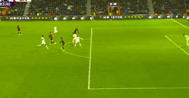 第84分钟,克里斯蒂中路推进,分球时机恰到好处,埃万尼尔松单刀捅射打偏,利物浦门前风声鹤唳。第86分钟,萨拉赫中路横传,埃基蒂克过人之后顺势直塞,维尔茨跟上小角度推射,彼得罗维奇扑了一下改变方向,皮球擦着远端立柱偏出!