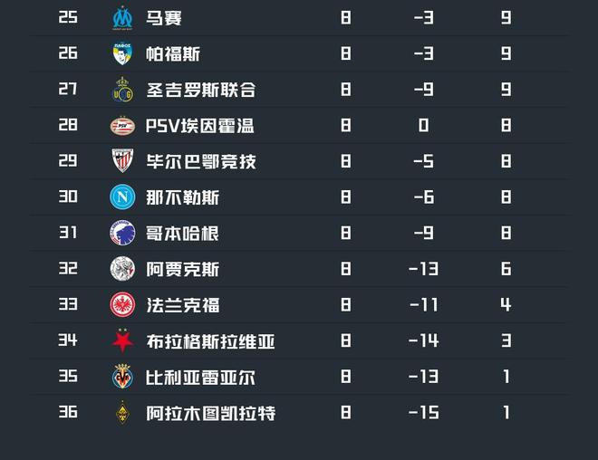 北京时间1月29日,欧冠联赛阶段的所有比赛已经全部结束,直接晋级球队、附加赛球队和出局球队都已经确定。